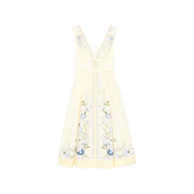 OTTIE PLUNGE涡纹亚麻中长连衣裙