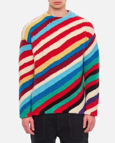 Multicolor Stripes Silk Crew Neck Pullover Top