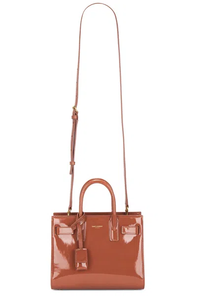 Sac De Jour Nano Patent Leather Handbag With Metal Padlock In Brown