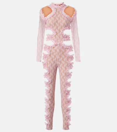 X Christopher Kane Embellished Lace-trimmed Mini Dress In Pink