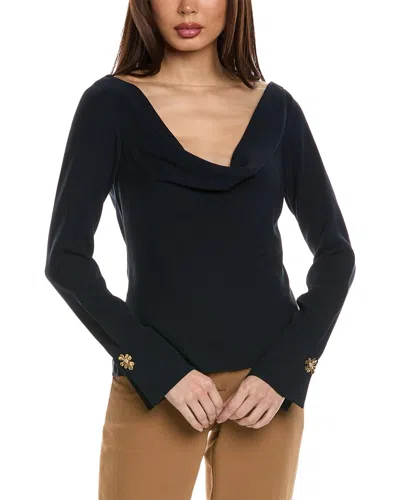 Winston Satin Lace Cowl-neck Blouse In Navy