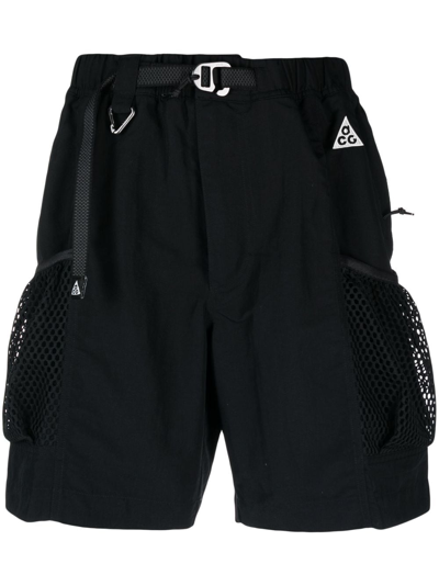 Acg Snowgrass Straight-leg Belted Nylon Cargo Shorts In Black