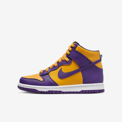 Kids' Dunk High Top Sneaker In White/midnight Navy/electro Purple
