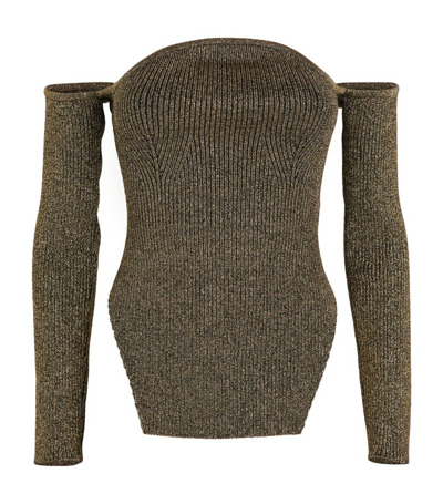 Beige Off-the-shoulder Knit Bodysuit In Brown