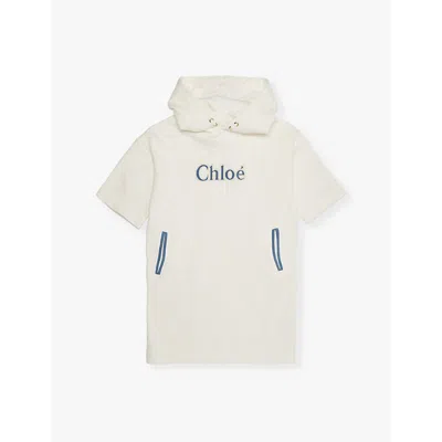 Kids' Offwhite Brand-patch Round-neck Cotton-jersey Dress 4-14 In White