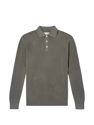 Cotton English Rib Knit Polo In Gray