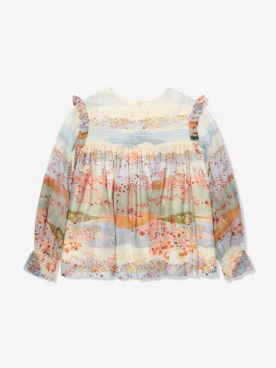 Kids Ceremony Graphic Printed Ruffled Detail Blouse In Multi