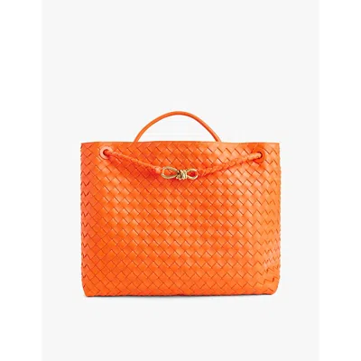 Orange-mb-orange Andiamo Woven-texture Leather Top-handle Bag
