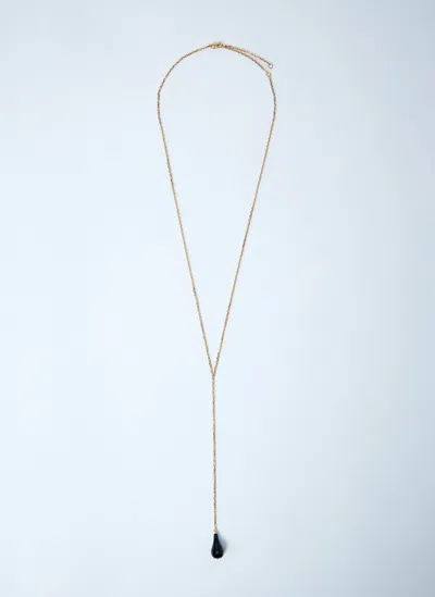 18k Gold-plated Brass Onyx Drop Necklace In Black