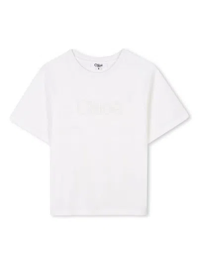 Kids' Guipure-lace Organic Cotton T-shirt In 白色