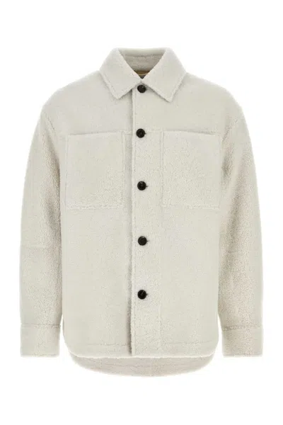 Shearling Button-up Overshirt In Neutral