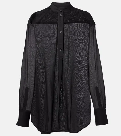 Oversized Shirt In Stretch Silk Charmeuse In Bianco