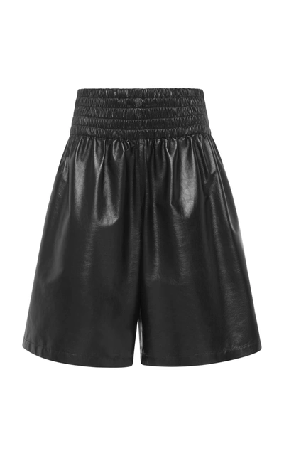 Leather Shorts With Elastic Waist And Side Pockets In Red