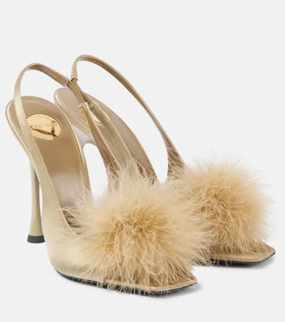 PARADIS 110羽毛边饰缎布凉鞋