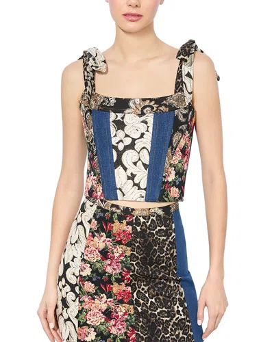 Floral Patchwork Bustier Top In Multi