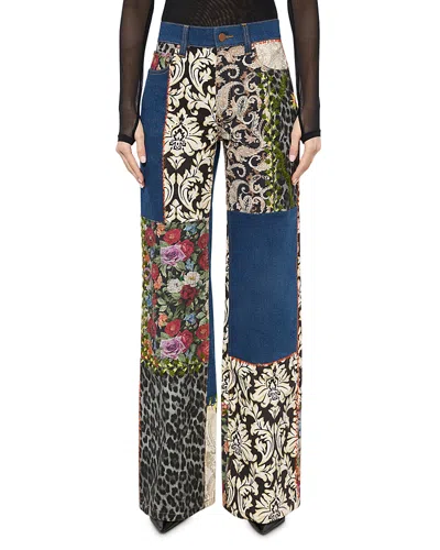 Patchwork Denim Jeans In Animal Print