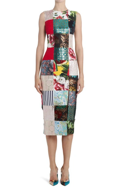 Floral Patchwork Midi Dress In Multi