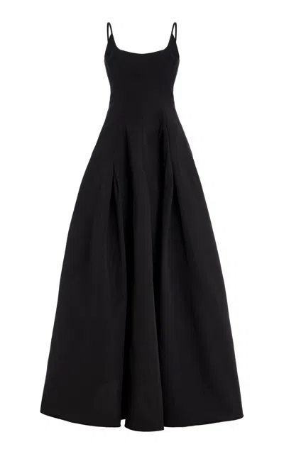 Joy Pleated Cotton-blend Faille Maxi Dress In Black