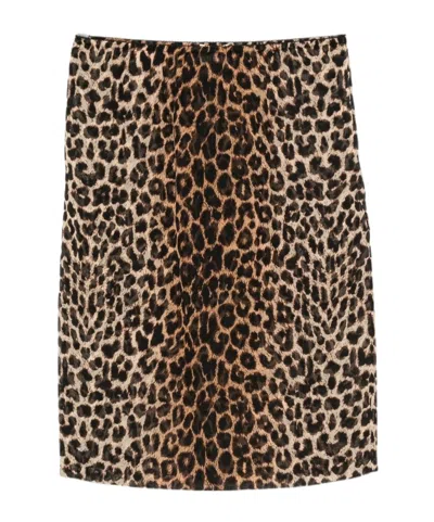 Jacquard Animal Print Lurex Knit Skirt Woman Animal Print Xs In Brown