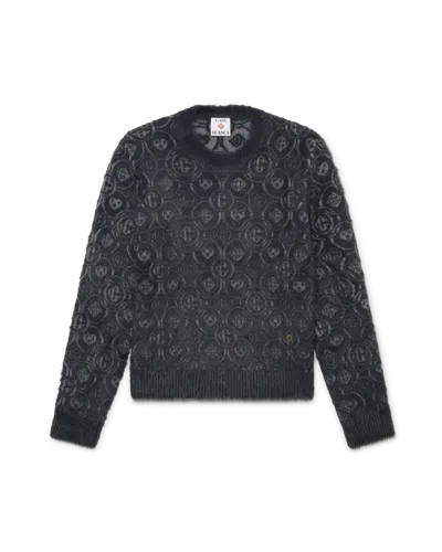 Mens Black Fluffy Emblem Knitted Jumper Xl