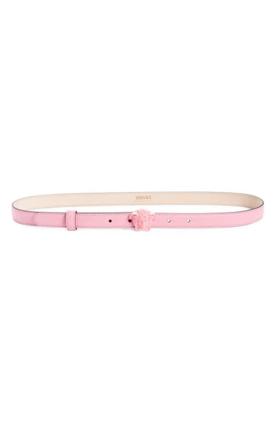 Medusa Leather Skinny Belt In Pink