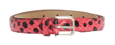 Pink Polka Snakeskin Silver Buckle Belt In Multicolor