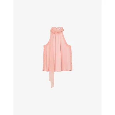 Womens Pale Pink Aurelia Frill-neck Cotton-muslin Top