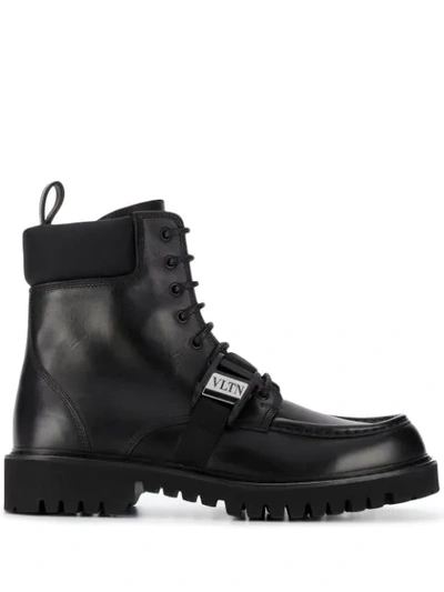 Dnu Pack Valentino Vlogo 35 Leather Combat Boot In Black