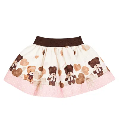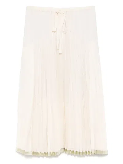 VALENTINO SILK V LOGO PRINT PLEATED SKIRT - 大地色