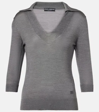 All-over Dg Silk Polo Sweater In Green
