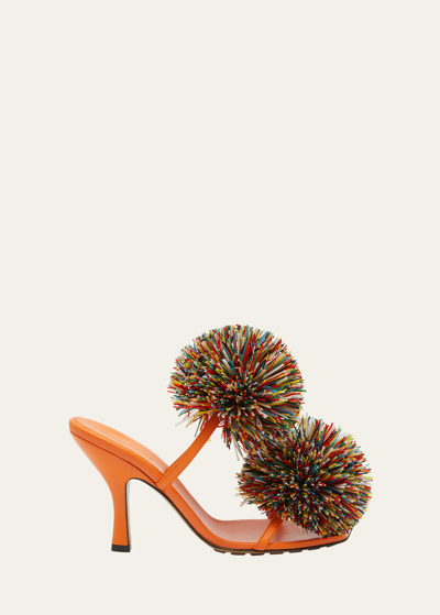 Adam Leather Two-band Pom Sandals In Papaya Multicolor