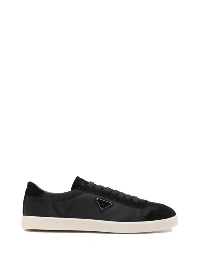 Prada Two-tone Leather Downtown Sneakers In White