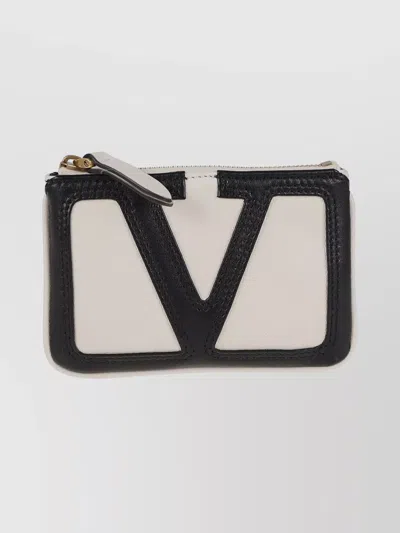 Valentino Vlogo Signature Leather Key Chain In Gray