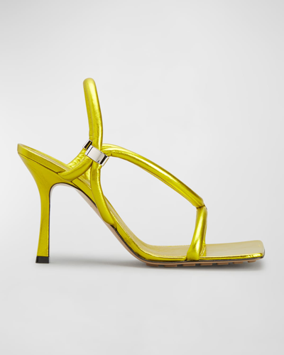 Stretch Metallic Leather Sandals In Gold