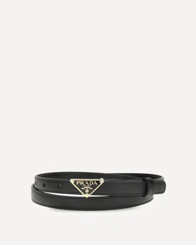 Triangle Logo Saffiano Thin Leather Belt In Black