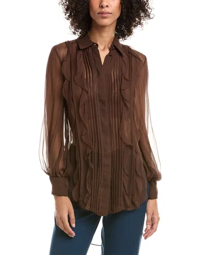 Floral-embroidered Short-sleeved Sheer Shirt In Animal Print
