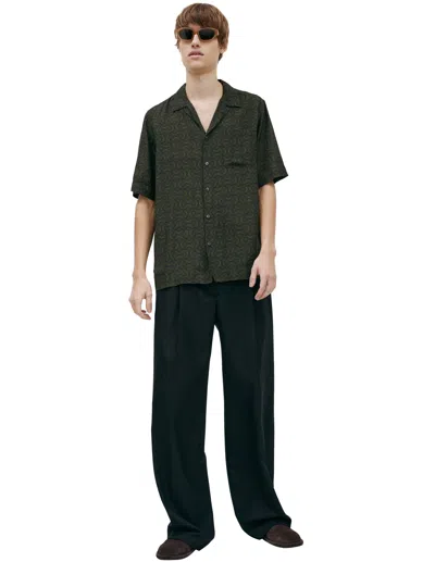Poplin Shirt Short Sleeves Chest Pockets Collar In Black