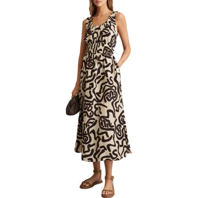 August Floral Print Long Sleeve Belted Linen Maxi Dress In Brown