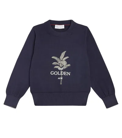 Kids' Printed Cotton Sweater In Navy+grigio+sabbia+panama
