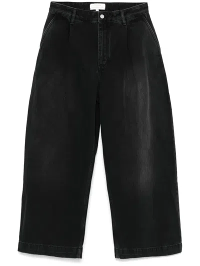 Wide-leg Peached Cotton Sorte Trousers In Black