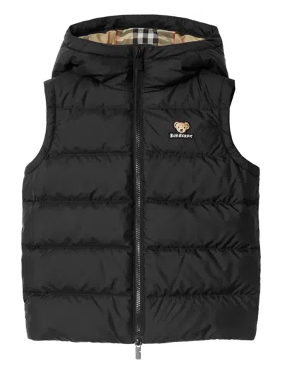Kids' Navy Longline Hooded Puffer Coat In Black