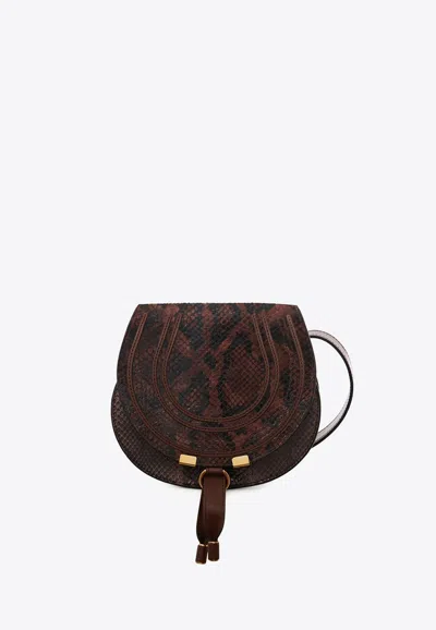 Small Marcie Saddle Python-embossed Crossbody Bag