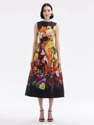 RAINBOW FLOWER MARBLE 罗缎连衣裙