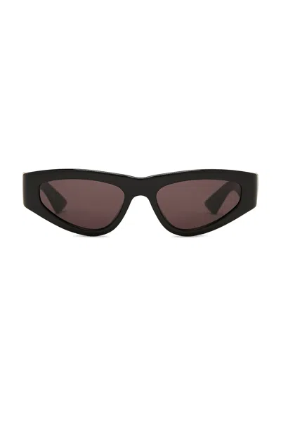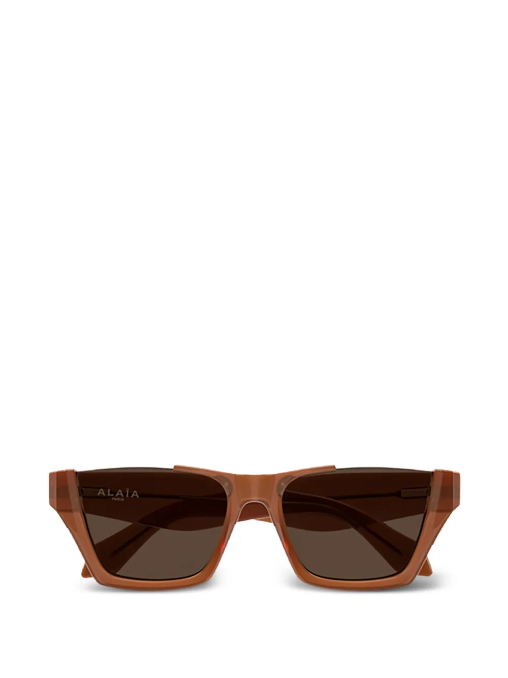 Brown Slim Ribbon Rectangular Sunglasses In Black