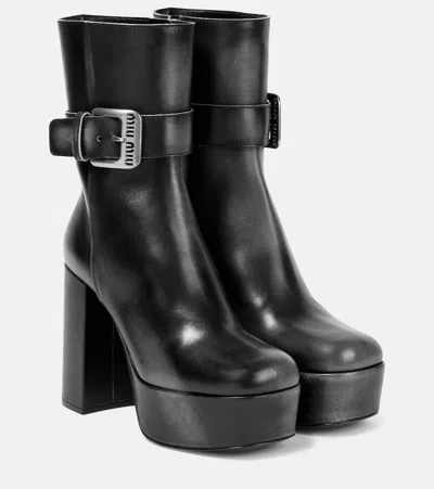Leather Zip Platform Booties In Black