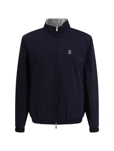 Wool Bomber Jacket In Navy Anthracite Rubino Blue