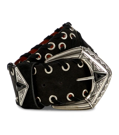 Arizona Rivet Border Taupe Suede Two Bar Mules In Brown