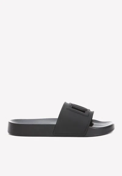 Logo Rubber Slides In Black