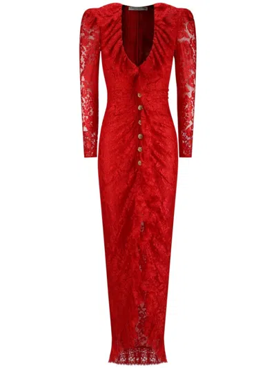 Womens Lipstick Lace Frill Knit Maxi Dress In Red