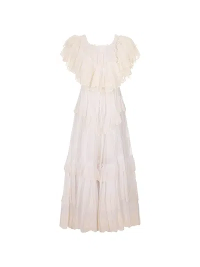 Ruffled Lace-embroidered Maxi Dress In Neutral